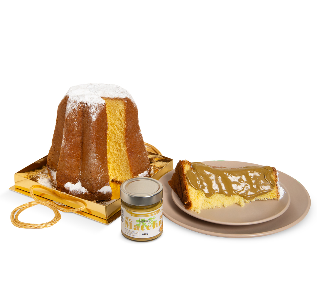 Box di Natale con Pandoro e Crema Spalmabile al Tè Matcha e Nocciole